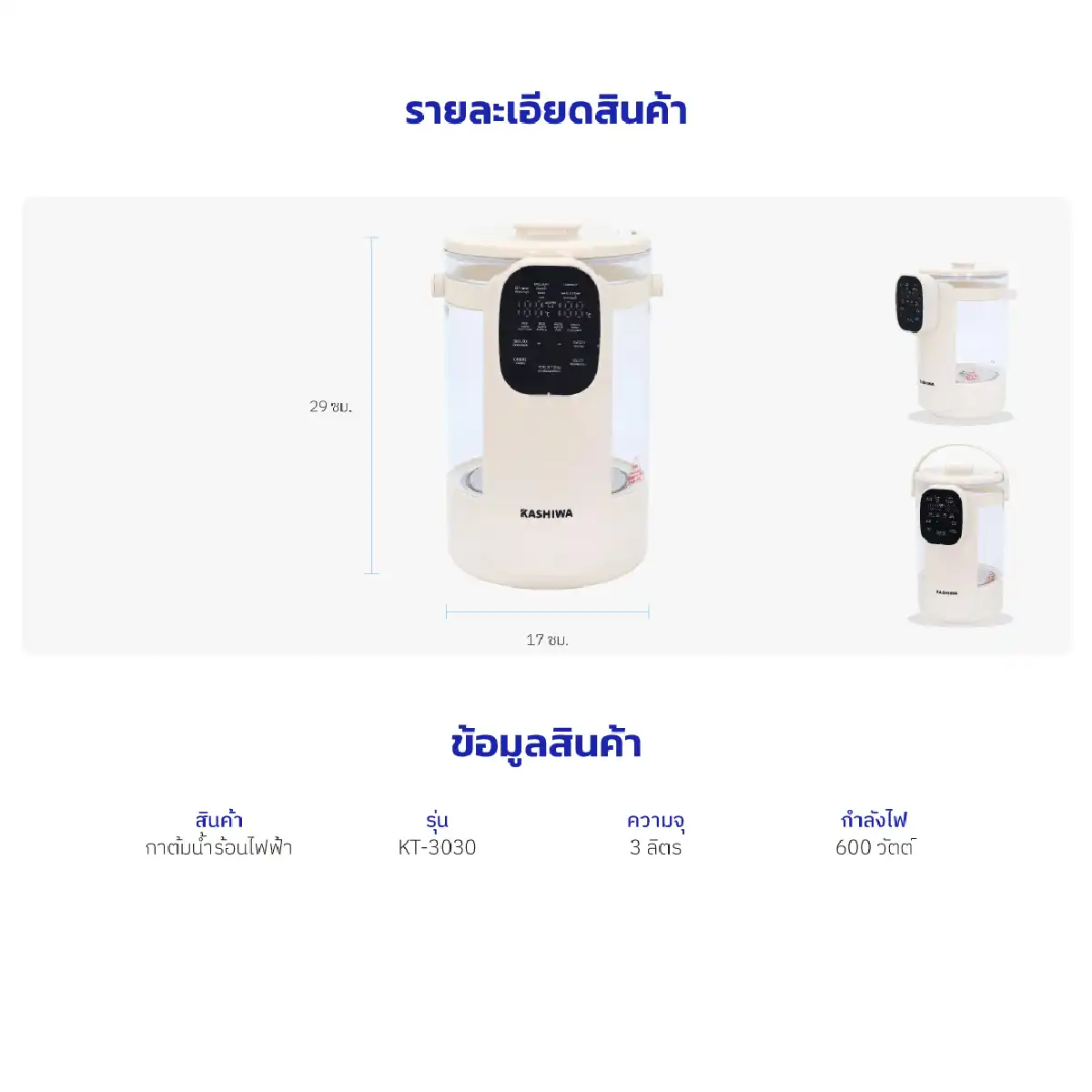 • ความจุน้ำ 3 ลิตร