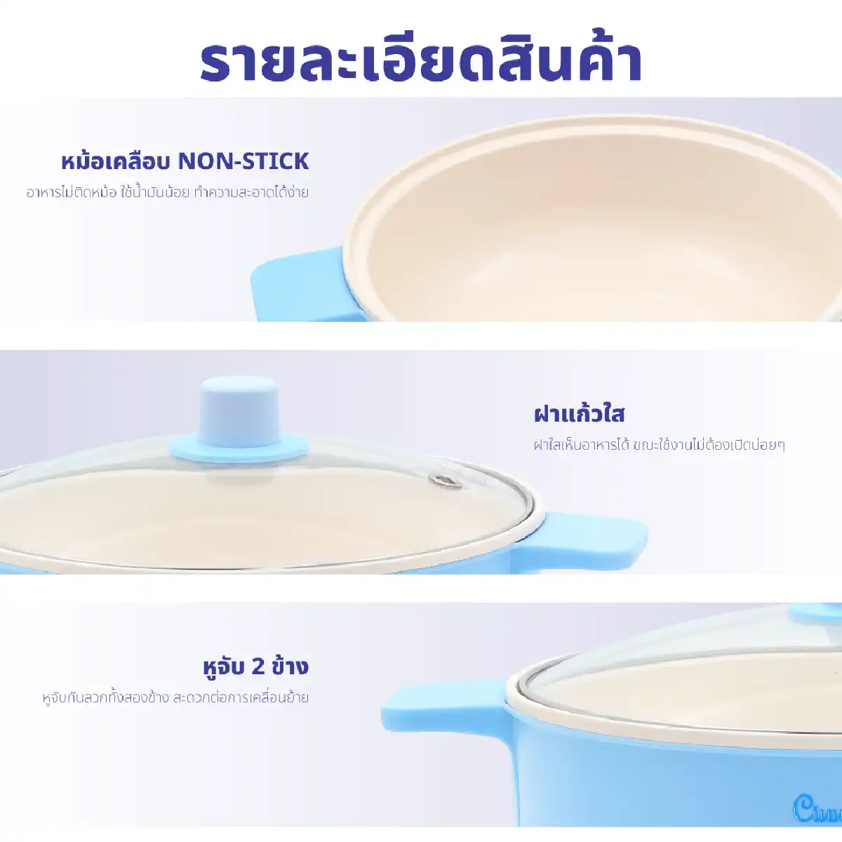 ด้านข้างมีหูจับวัสดุเป็นพลาสติกทนความร้อน และสะดวกต่อการเคลื่อนย้าย